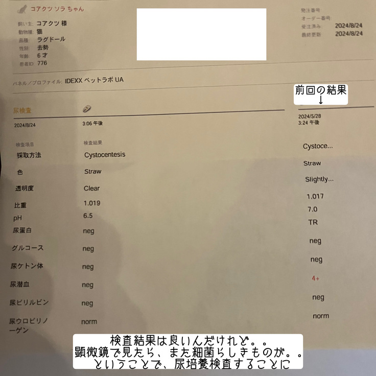 検査上は潜血もなくなりいい感じなのですが、顕微鏡で見たところ細菌があるようなので、今回も尿の培養検査に出して貰うことになりました。