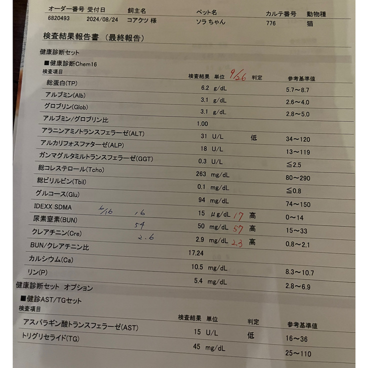 先日(9/24)の血液検査結果をポイント部分だけ、電話で聞きました。