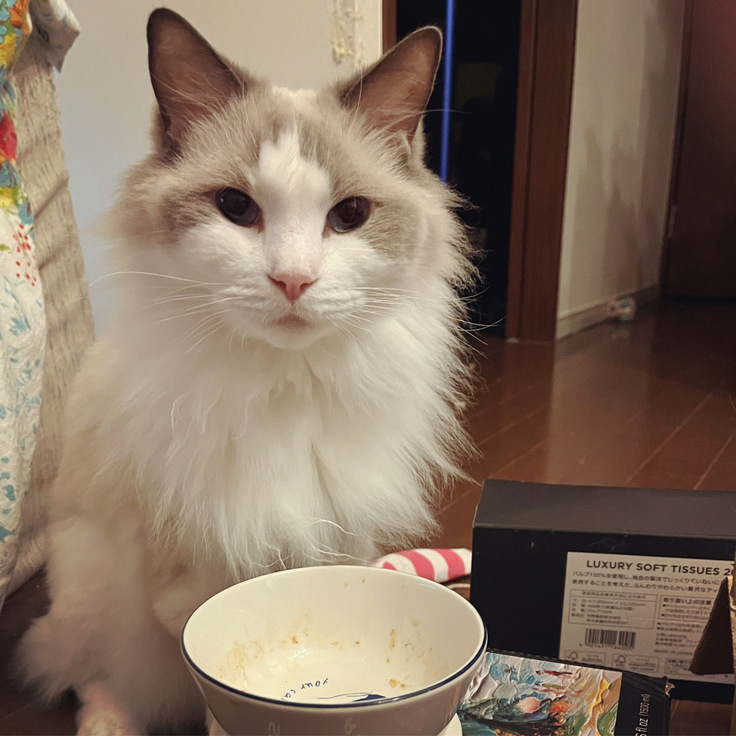ご飯足らないと訴えるソラ坊の写真ですw