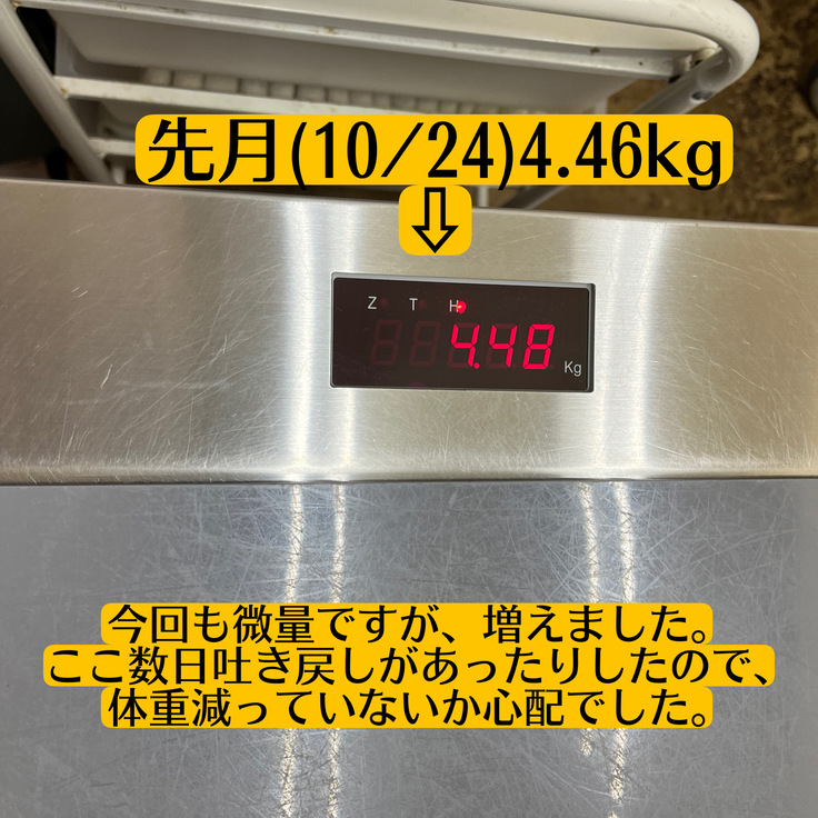 ドライフードをここ数日吐き戻したりしていたので、体重減っていないか?正直心配しておりました。