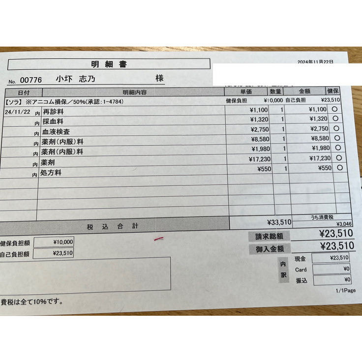 本日の医療費:23,510円
