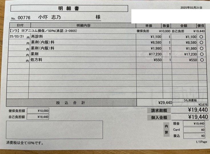 体重キープしていたので、1ヶ月分のお薬と点滴セットを貰って帰りました。