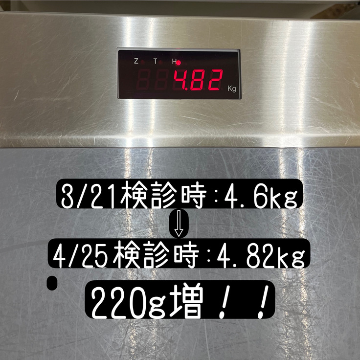 体重が先月4.6kg→4.82kgと220g増えてたぁぁ!