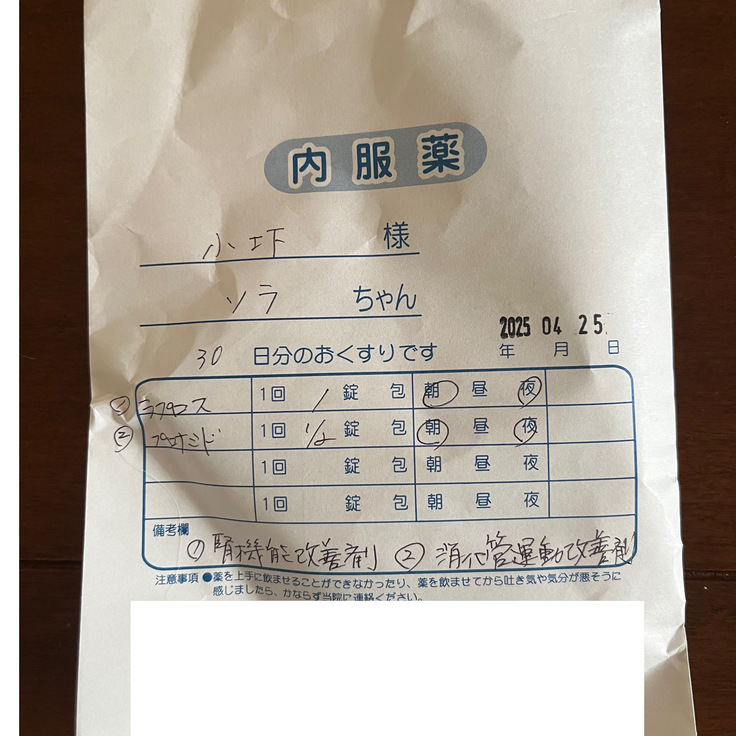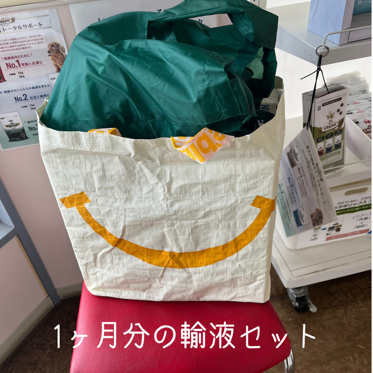 今日も体重が増えている為、血液検査は無しで、1ヶ月分のお薬と輸液セット貰って終了☑️