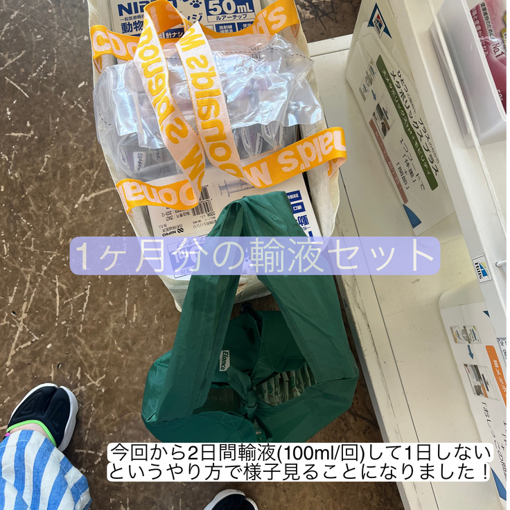 輸液は今まで毎日していたのですが、今回から2日やって1日休むと回数を減らして様子見てみることになりました。