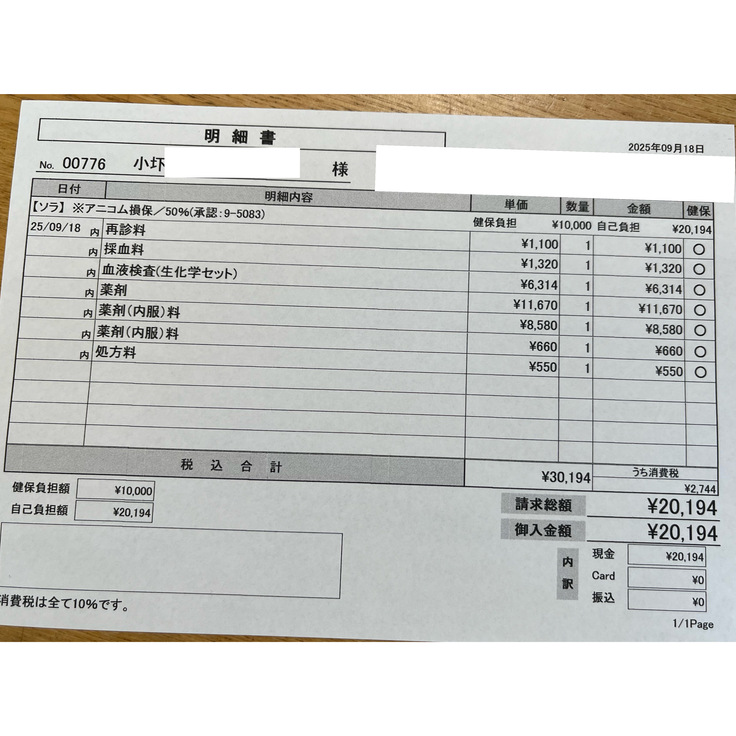 体重は、先月(8/22)4.82kg→4.78kgと40g減と2ヶ月連続で減ってきており、私自身どうしたらいいか?と悩んでいますが、先生的にはこれ以上減らなければ大丈夫だろうと。