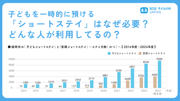 SOS子どもの村JAPANでは、「里親による子どもショートステイ(里親ショートステイ)」の普及を福岡市民の皆さまと進めてきて、利用状況は毎年増加し続けています。