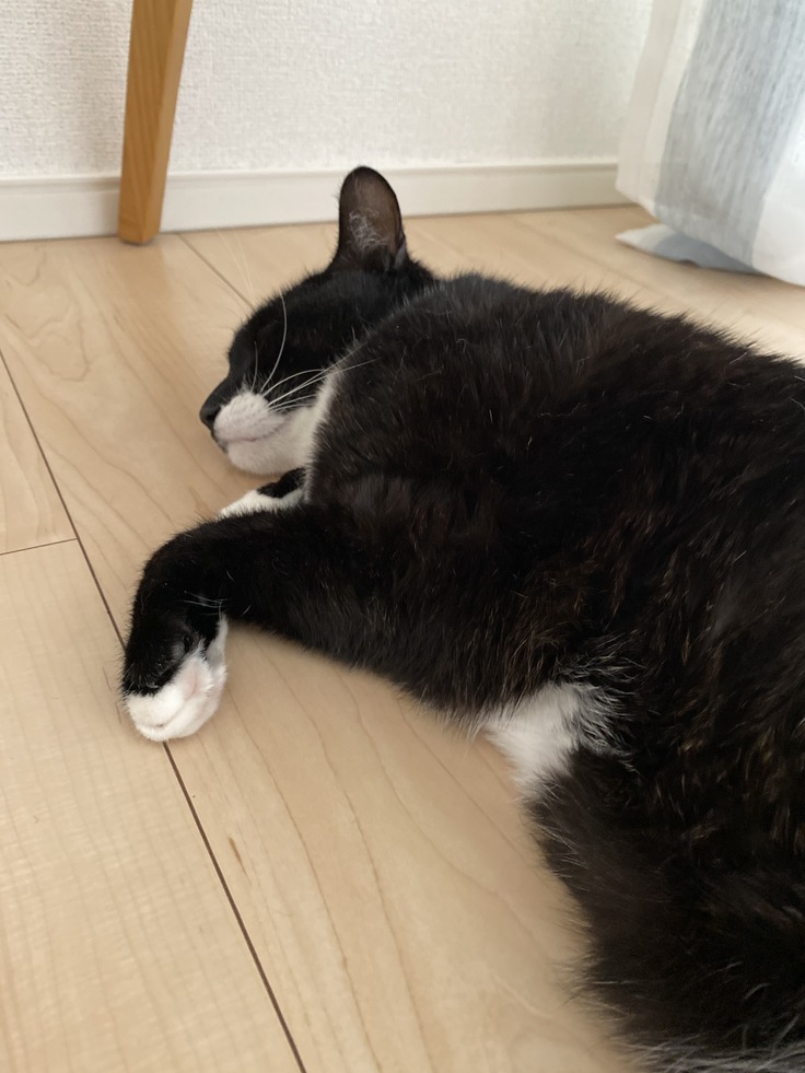 点滴から帰ってきたら少し気持ちよさそうに、お気に入りの場所でお昼寝しています。少しほっといたします。