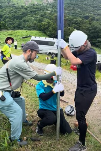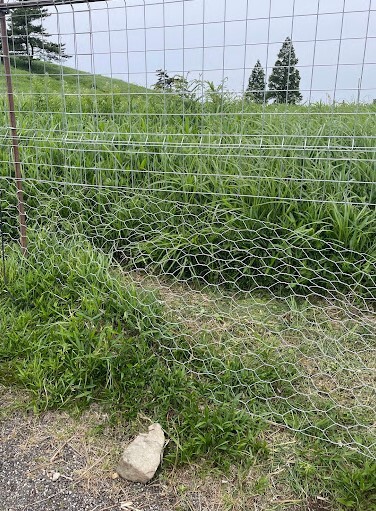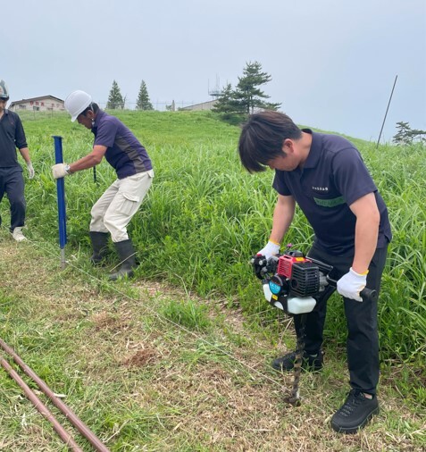 3合目の草原にはユウスゲの群生地があり、既にニホンジカなどによる食害対策として防護ネットが設置されいますが、防護ネットを剥がす作業と金属柵の設置しました。