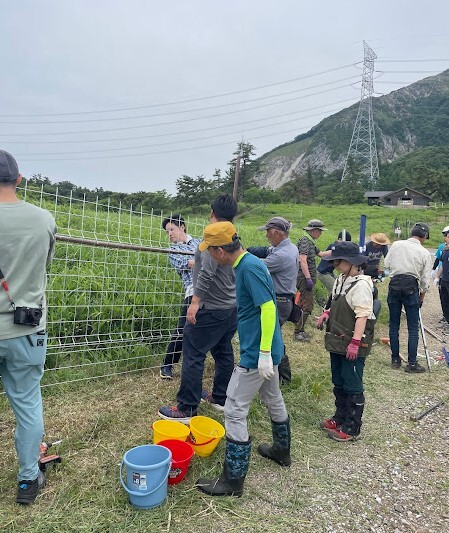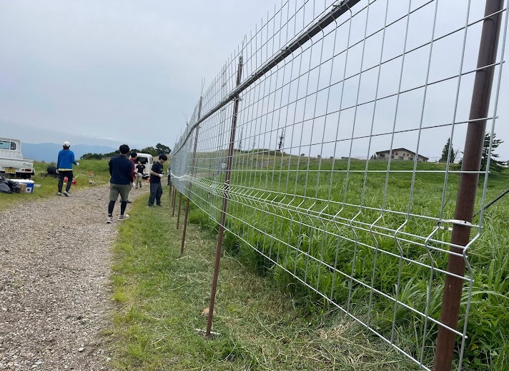 前回の活動時よりも人数は少ない人数でしたが地元の方々のご協力もあり、無事に柵の設置を完了する事ができました。