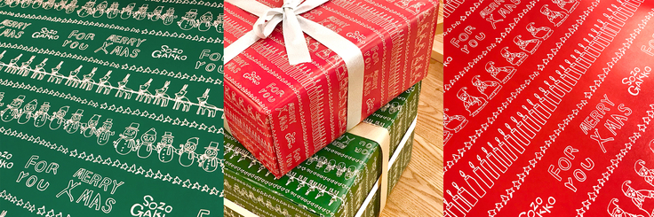 この度の感謝を込めて、返礼品をお包みするオリジナルのクリスマスラッピングを作りました。