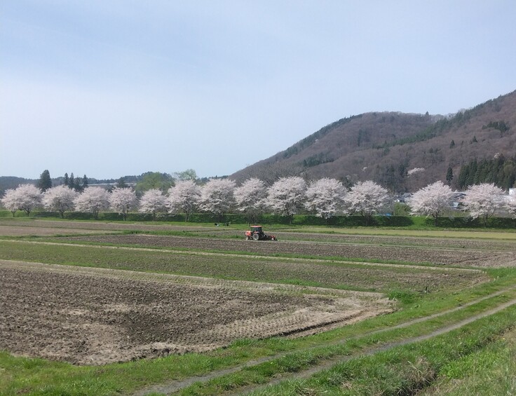写真は今日の近所の田んぼです。桜が満開です(^^)
