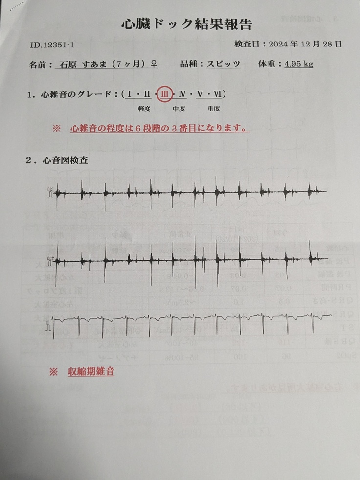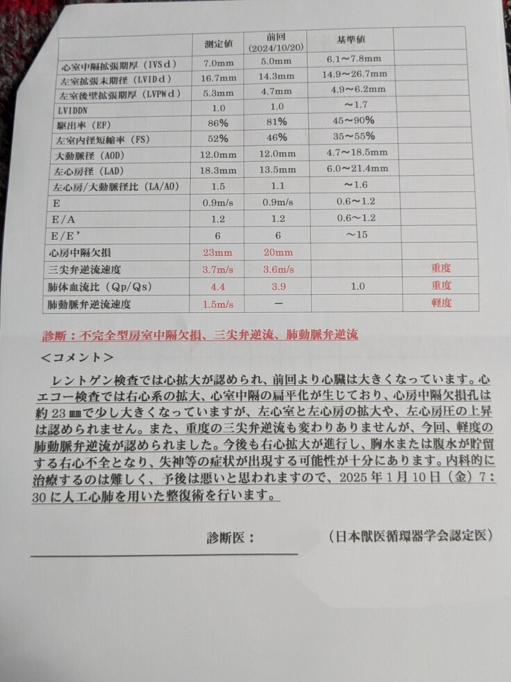 以前診断した10月から2ヶ月が経過しているため、身体も臓器も大きくなっているとのことから、心臓の壁も拡大。心拡大も進んでおりました。
