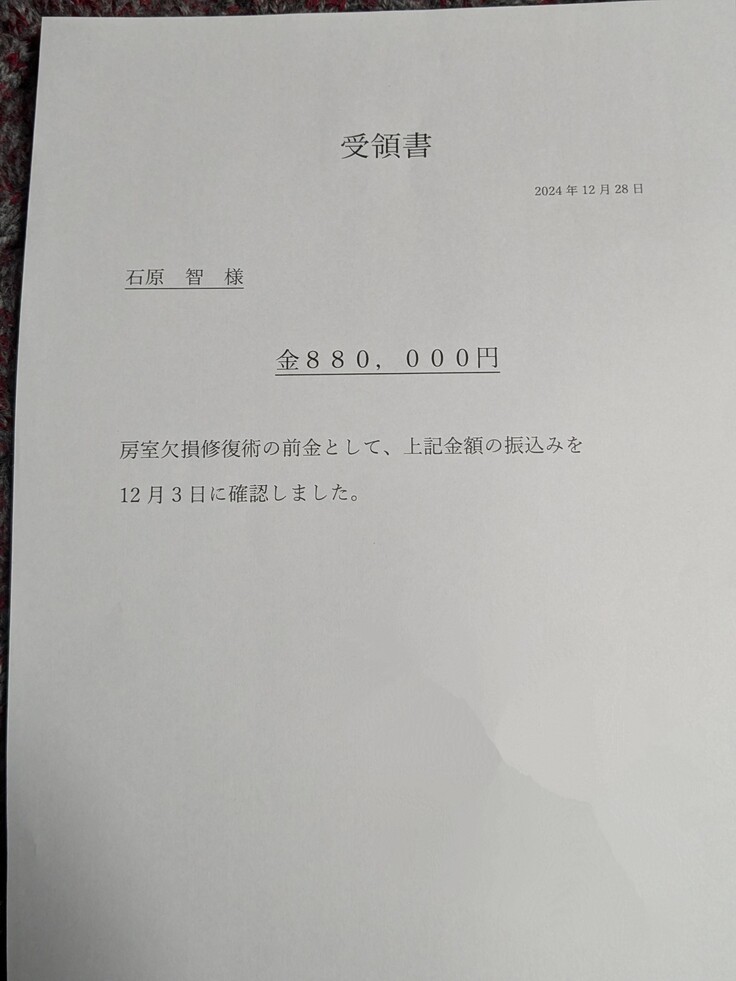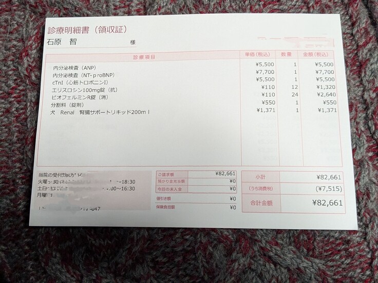 ということで、手術費と、本日の検査費用を払っていますので、写真を掲載します〜