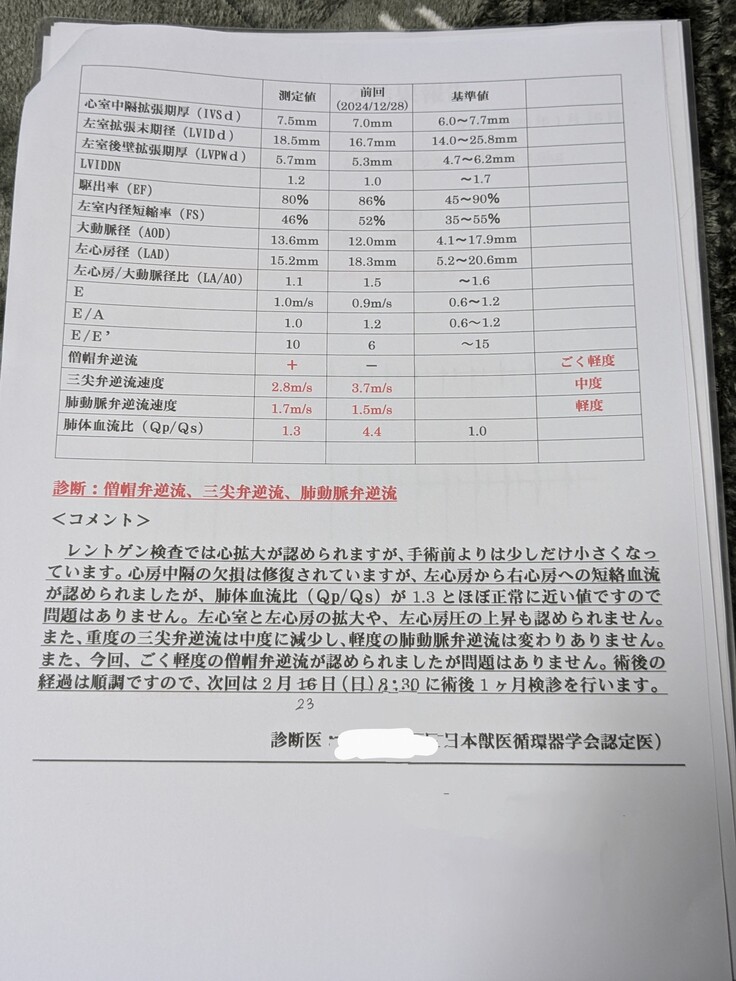 心臓の様子も順調で、次回の検査(2月23日)ではもっと良くなることを願うのみ🙏です…