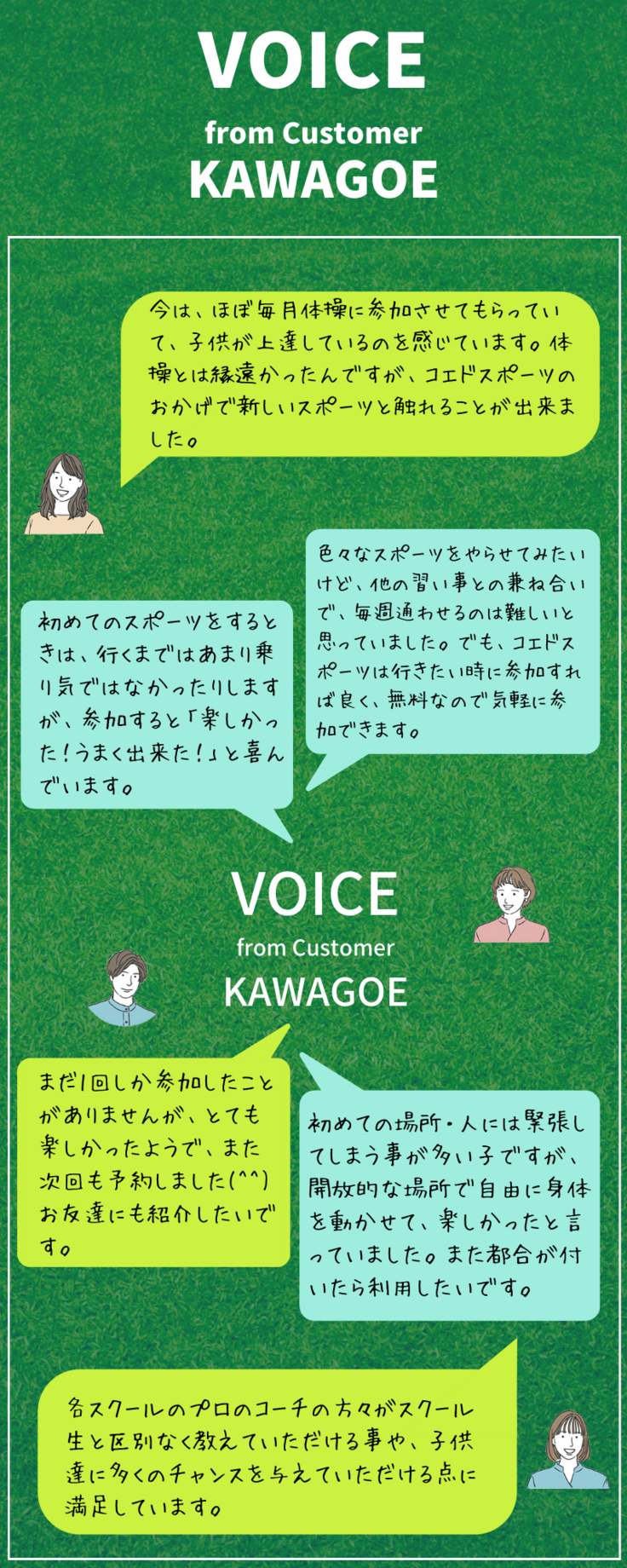 ▼川越で行う前身サービス「co-ed Sports(コエドスポーツ)」でいただいたお客様の声