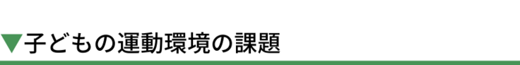 また、2021年のスポーツ庁の公表では、2021年度の全国体力テストにおいて、小中男女とも前回より体力合計点は低下、特に男子は2008年度の調査開始以来、最も低くなっており、コロナ禍もあって子どもたちの運動環境が著しく悪化しているのが現状です。