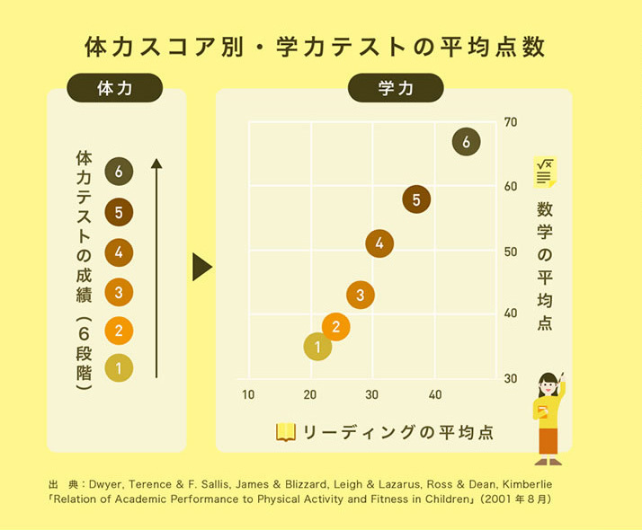 そして、定期的な身体活動を継続している子どもは、心肺能力や筋力、骨密度が高く、肥満度は日繰り傾向にあり、不安や落ち込みといった精神面での問題軽減にもつながると言われています。