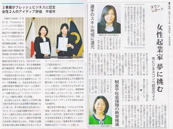 ◆2014年、スポーツ選手を支えるビジネスプランをご提案し「Hiratsuka フレッシュビジネス認定コンペティション」授賞。