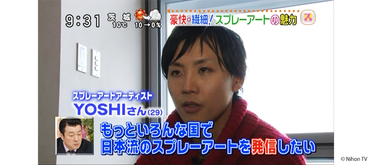 「スプレーアートアーティスト YOSHI」としてブラック企業を脱サラして12年になりますが、テレビや新聞などマスメディアにも出演して、おかげさまで楽しくアートを通して社会貢献をさせていただいております。