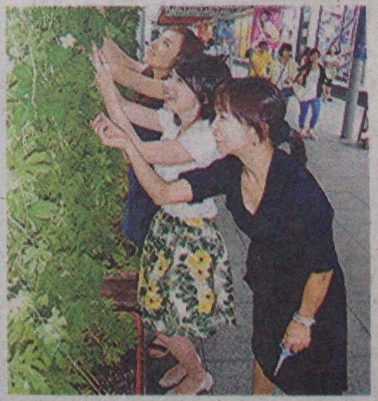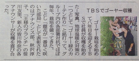 弊社TBSでは、地球温暖化防止の一助にと「ゴーヤー緑のカーテン作り」として部局対抗で栽培に励んでいますが、今年は秋沢の所属するアナウンス部が、栄えある「雌花が一番最初に咲いた部局賞」を獲得致しました!