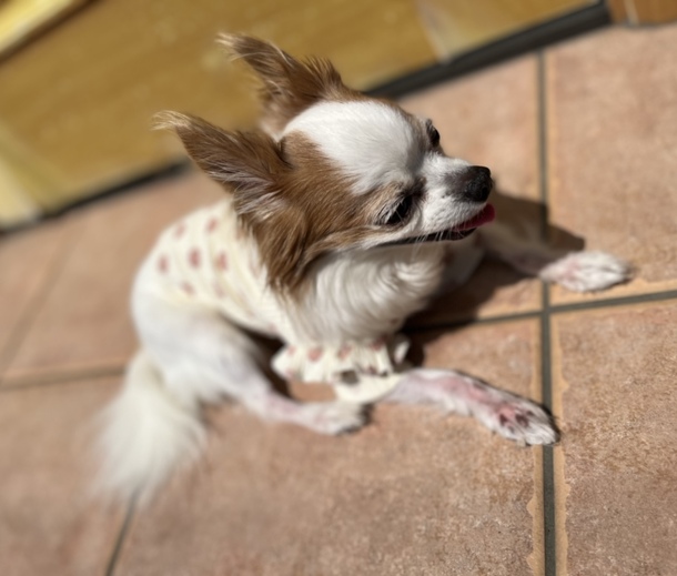 昨日、今日と☀️晴れたのでお昼にお外で日向ぼっこさせました。