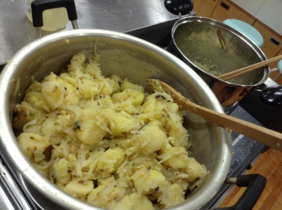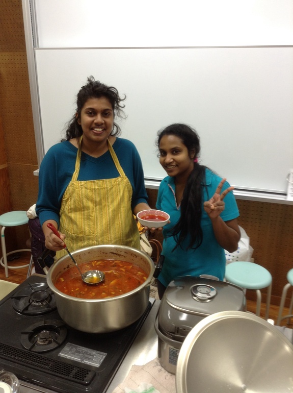 人参サラダ、ポテト、チキンカレーの3品40人分をスリランカ留学生のガヤニさんとジャナニさんに作ってもらいました。