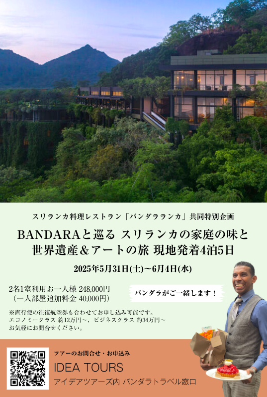 バンダラランカでは、2025年5月31日(土)〜6月4日(水)現地発着4泊5日でスリランカを訪れるツアーを企画し、参加者を募集中です。今回のツアーでは、展示作品の制作などを行なったエナ・デ・シルバの工房、アルウィハーレ・ヘリテージ・センターも訪れます。アルウィハーレ・ヘリテージ・センターで働く女性職人たちとも、交流予定です。