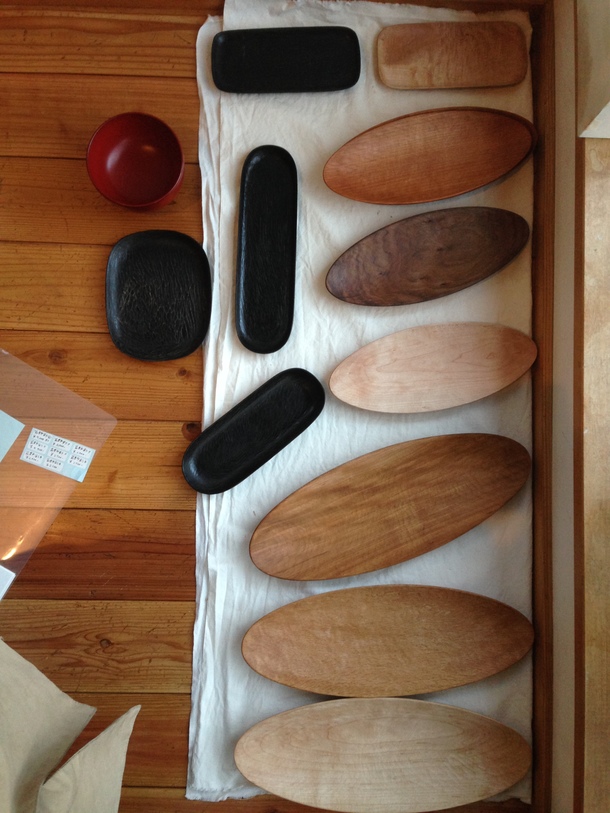 先日、年末年始の展示の為に新しい器を制作している木工作家の岩野彩さんのところにお邪魔しました。漆で仕上げた皿が特にかっこよかったので、SSSでも今後購入できるようにしたいと思います。また、岩野さんは日本民藝館の民藝館展にも出展されていました。