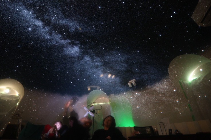 実際のドームはカフェとしても利用されているため、窓や隙間から光が入り込む環境でしたが、それでも非常に美しく星空を投影することができました。