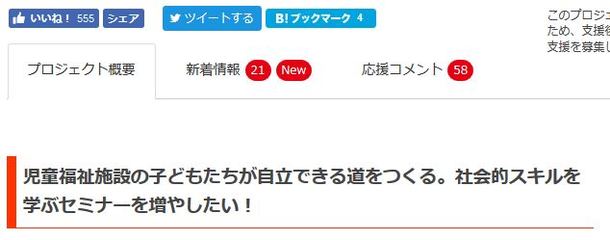 そんな中、ふとプロジェクト概要のページを見てみると、いいね!の数が555件になっていることが分かりました。