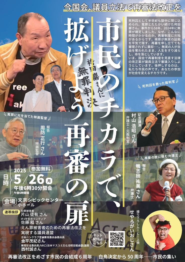 5.26(火)市民のチカラで、拡げよう再審の扉