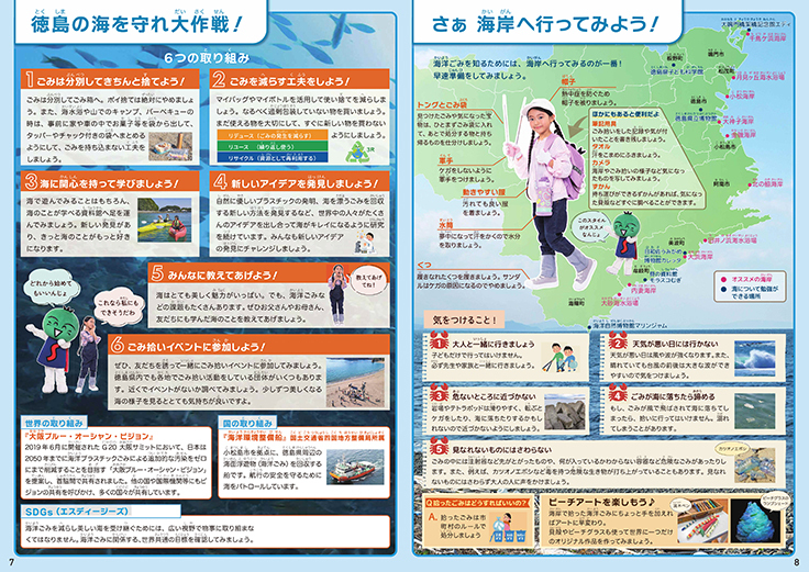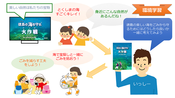 2023年度に海洋プラスチックごみ問題を学習するための動画教材と冊子の制作を徳島県より受託し、「徳島の海を守れ大作戦」を制作しました。