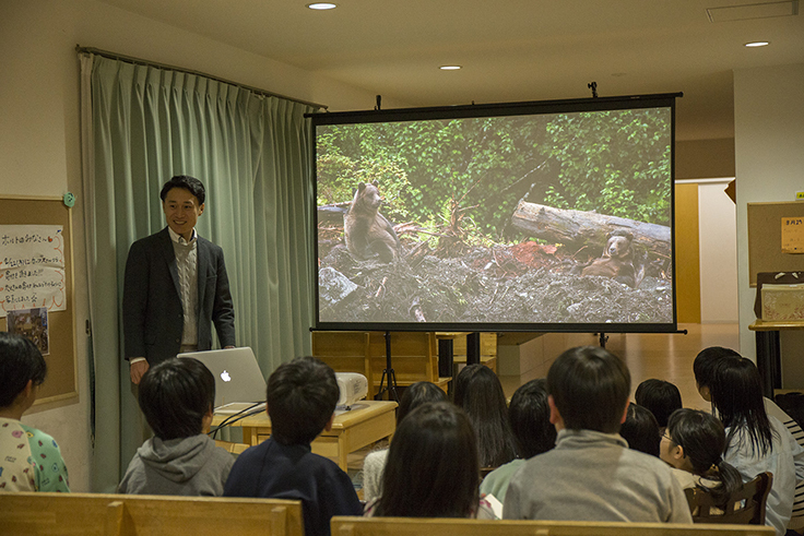 子どもたちへ自然や動物の写真、映像を見せることによってそれが心のどこかに残り、大人になった時に何か一つの行動に繋がるのかもしれない。さらに、もしかしたら地球環境についても関心を持ってくれるかもしれない。それならば、地球のことを伝えるためにもっと子どもたちに会いに行こう。そう思い立ち地球写真家が誕生した瞬間でもありました。