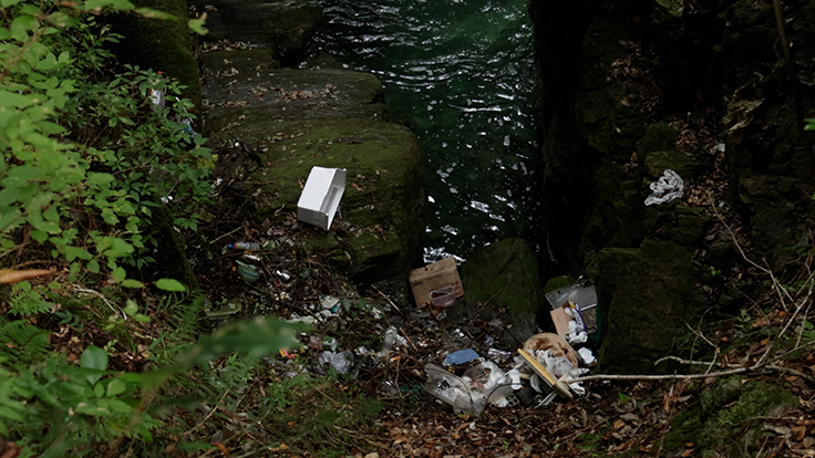 川に流れ込むごみプラスチックごみも多種多様で、人工芝、洗濯排水、肥料ビーズ、タイヤの擦りカス、ごみの管理不足など普段の生活から発生するもののほか、不法投棄やポイ捨てによる悪意の流入があります。
