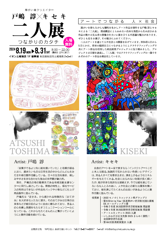 きっと皆様も彼らの頑張る姿に元気と勇気をもらったのではないでしょうか?彼らが生み出す作品、アートには人を癒し、そっと背中を押してくれるような優しさがあります。これからもきっと誰かの人生を応援できるような存在として、秋田県の誇りとして活躍してくれることは間違いないと思います。