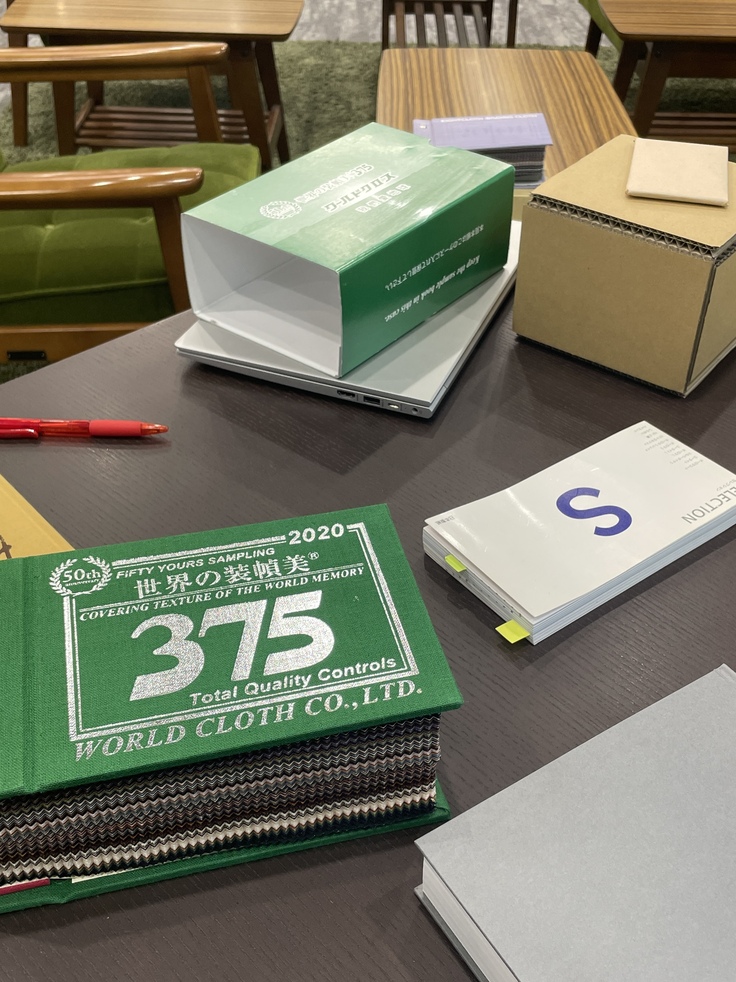 希望のイメージと近いクロス生地を3〜4つ候補として選び、その在庫を調査していただき、無事に第一希望としていたクロスを表紙として採用することができました。作りたかったままの形の見本が今こうして手元にあること、とても感謝しています。