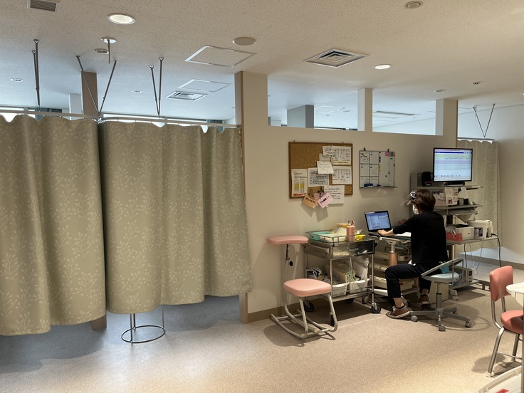 産科病棟の改修工事に伴い、ナースステーション横に新たに観察室を設けました。産科・婦人科の患者さんが安心して過ごせるよう、24時間体制で見守ります。安全で快適な環境づくりを進めています。