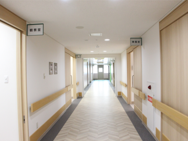 空調設備を更新し、今まで以上に温度と共に適切な湿度調整ができるようにしました。また、妊婦さんの心的ストレスを軽減するため、NICU・GCUの扉を外からでも中の様子が伺えるように改修を行いました。