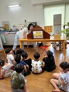 世代交流は絵本の読み聞かせと紙芝居も元図書館司書の方にお願いしました。