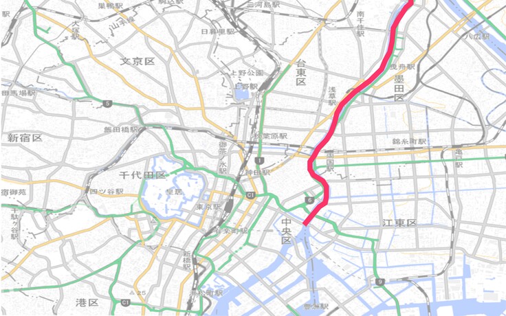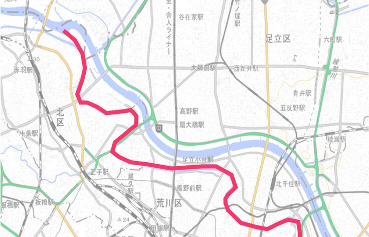 隅田川の上流部、普段はほとんど船の往来のないエリアを、ゆっくりしっかりたっぷり乗船いただけます。(ドローン撮影のための船に同乗)