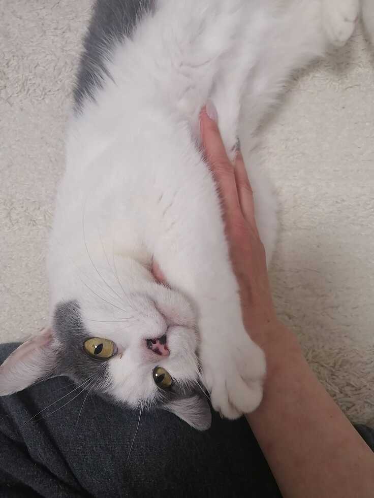 ナデナデされるのは大好きですり寄ってきてくれる可愛い子なんですが、抱っこは苦手です。特にしっぽの付け根がお気に入りで、そこをなでるとゴロンゴロンします。