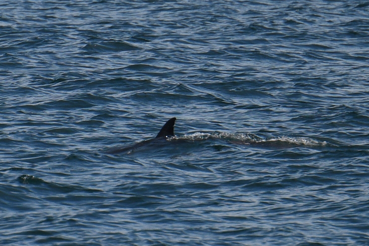 そしてなんと、マイルカの群れ(5-6頭)にも会えました!カメラを構えた時にはもう遠くの方へ…。なんとか背びれだけでも撮影することができました。
