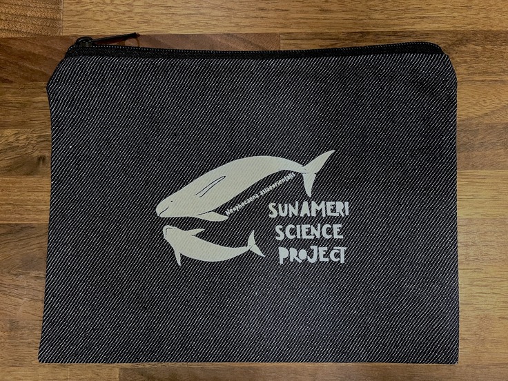 ポーチには、スナメリの親子とスナメリの学名である”Neophocaena asiaeorientalis”の文字が綺麗にプリントされました↓