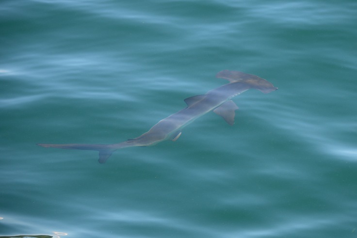 8日の調査ではスナメリに会えなかったものの、ハセイルカ(マイルカとも呼ばれる)20-30頭の群れに遭遇したり、シュモクザメを見ることができたりと、辛い気持ちを和らげてくれるような出来事もありました。特にハセイルカはスナメリとは異なり、ファンサービスが旺盛なので、ついつい見とれてしまいました。