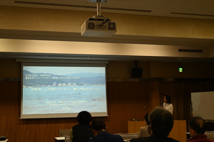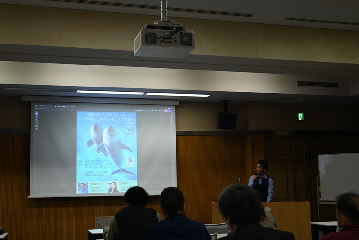 ご報告が遅くなりましたが、4月30日に神戸大学・深江キャンパスにて、「里海を泳ぐスナメリたち〜大阪湾から考える海と人の共生〜」というタイトルでシンポジウムを開催しました。