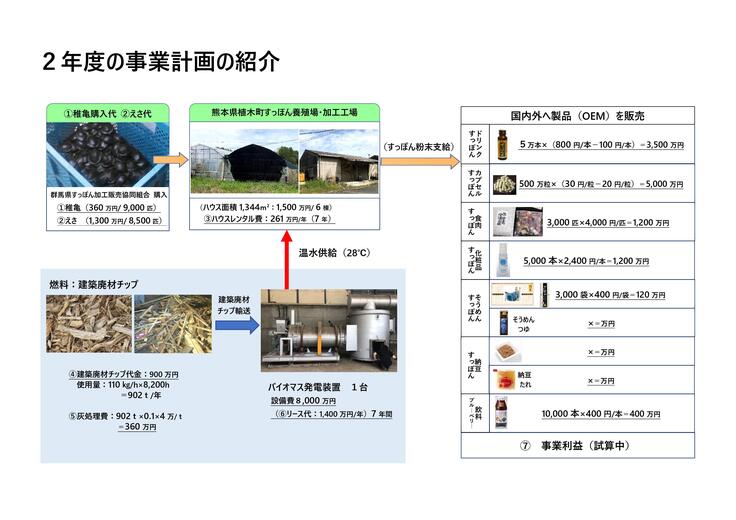 2年度は、熊本県植木町の『既設養鰻施設をすっぽん養殖・加工場』として年間約1万5,000匹の出荷を行う予定です。更には、山形県内でも年間約2万匹の出荷計画も進めています。