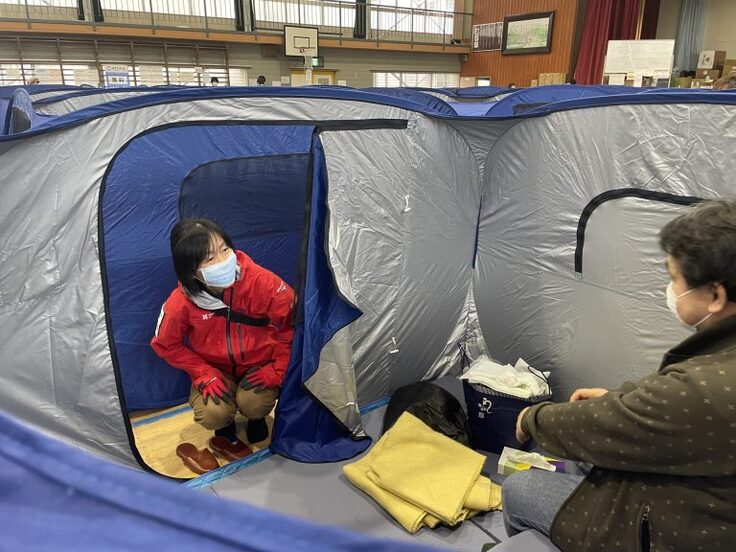 避難者のなかには高齢者も多く、「段ボールベッドが入ったことで本当に楽になった」との声も聞かれました。