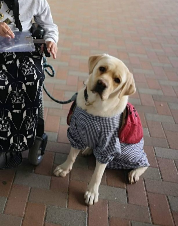 初代介助犬カロリーナに続きピエールが一緒にいてくれることで落とした物を拾ってくれるのはもちろんですが、街中で声を掛けて下さる人が増えたのでとても気持ちが癒されます。