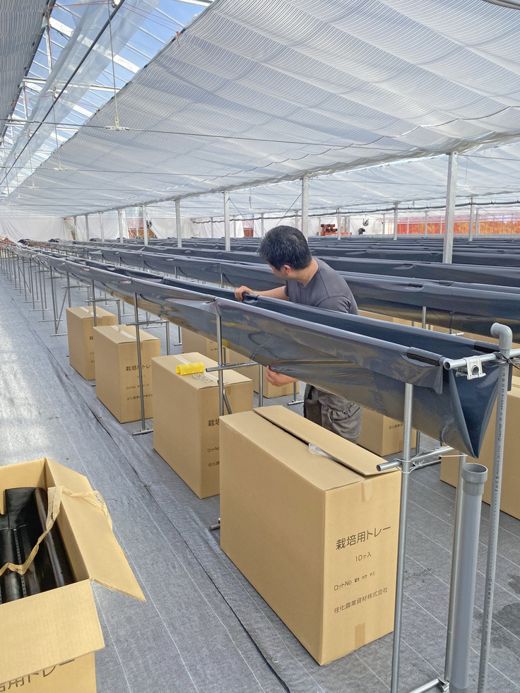 いちごハウスは無事に完成し、これからハウス内にいちごを植える準備をしています。
